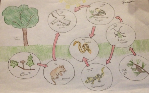 Small hawks, frogs, or foxes make a living by hunting the herbivores, adding another step in the energy journey.